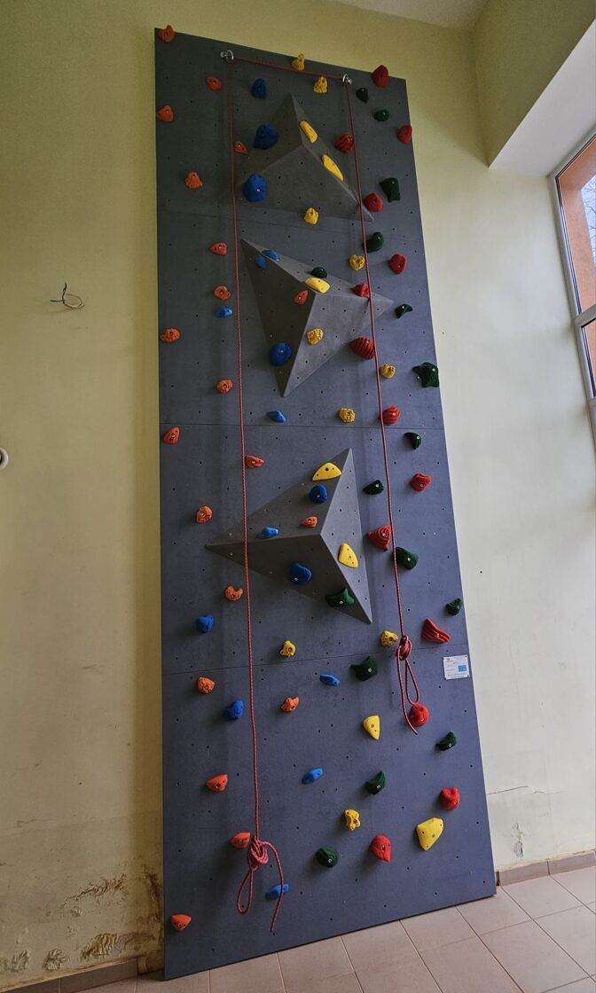 Šis ir sen gaidīts kāpšanas sienas paplašinājums, jo skolā aktīvi darbojas sporta tūrisma pulciņš, un uz esošās kāpšanas sienas vietas visiem nepietiek.Maksimālais augstums 9m, platums 11m un platība 89 kv.m. Klāt nākuši 7 celiņi un kopējais staciju=kāpēju skaits vienlaicīgi nu jau 12.
